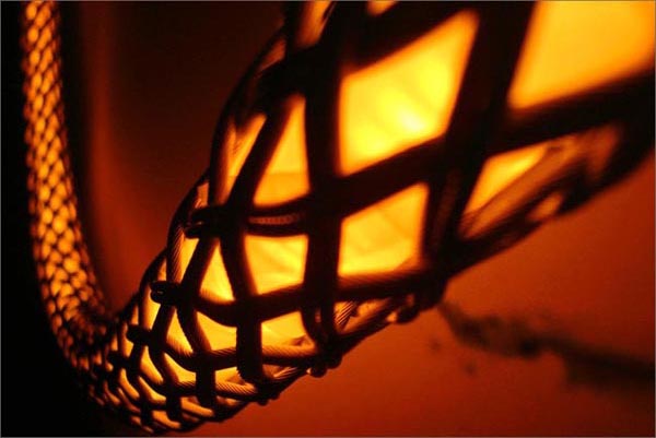Braided stainless steel fibres wrap, protect, and provide a functional and aesthetic armature for the glowing, colored polycarbonate inner core. It can easily be hung from either end or both ends. 6ft long, 2" diameter.