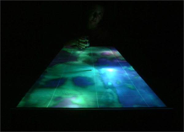 More than the others, the pictures don't do this prototype justice. Ambient room lighting and a table in one piece. Object on this table are in an eerie psuedo-silhouette. Great if you're looking for minimal lighting in a room, yet still be able to see your drink, phone, etc..