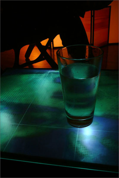 More than the others, the pictures don't do this prototype justice. Ambient room lighting and a table in one piece. Object on this table are in an eerie psuedo-silhouette. Great if you're looking for minimal lighting in a room, yet still be able to see your drink, phone, etc..