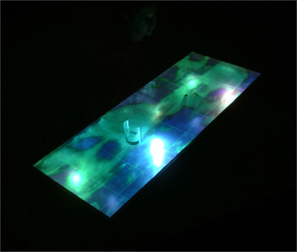 More than the others, the pictures don't do this prototype justice. Ambient room lighting and a table in one piece. Object on this table are in an eerie psuedo-silhouette. Great if you're looking for minimal lighting in a room, yet still be able to see your drink, phone, etc..