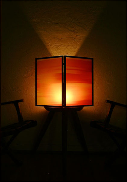 Their small size makes them very flexible; on a table, shelf, or in combination with other lightworks. Like the multi/floor lamp they can be oriented upright or horizontally. Approx. 18" tall, 24" wide at full spread.